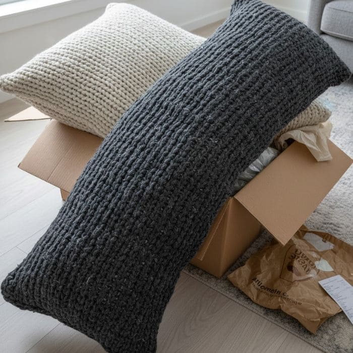 The colors were slightly off, leaning cooler than the warm neutrals I expected. The knit was rougher than it looked, almost scratchy, and the long lumbar pillow was so oversized it nearly spilled over the sofa edges. The entire set felt wrong in my space, no matter how many times I rearranged them.