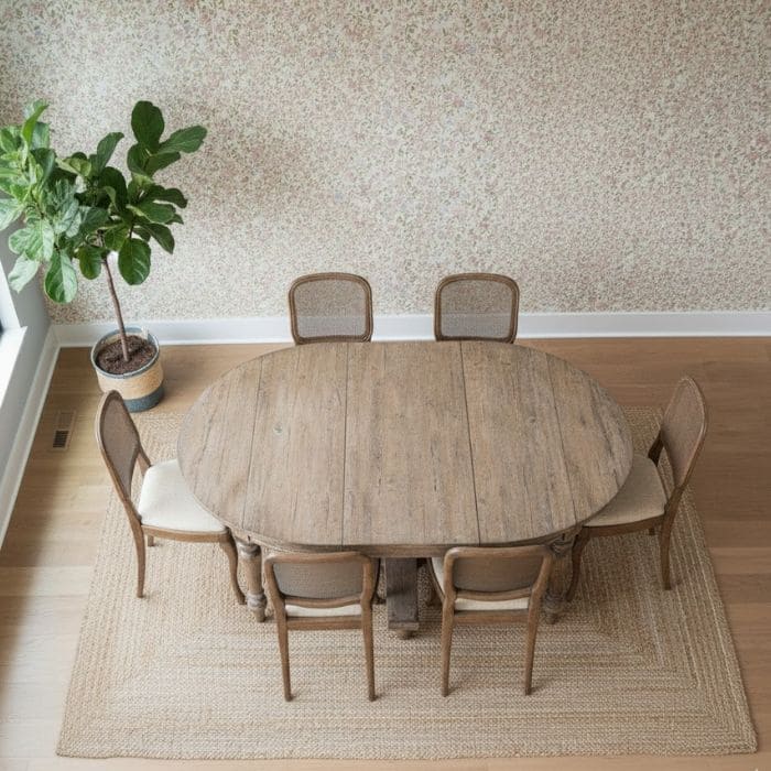 The flowers were small, scattered, and soft, not overwhelming. I chose to place it on just one accent wall, the wall directly behind where the dining table would sit.