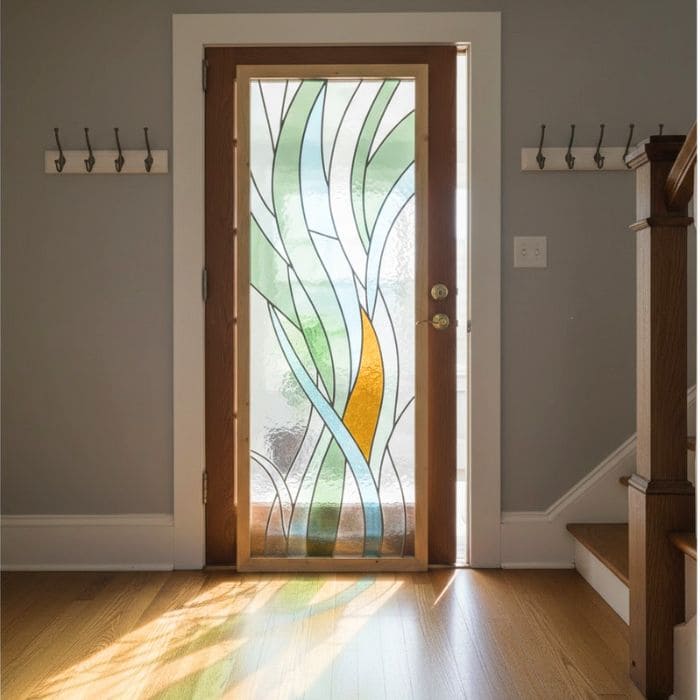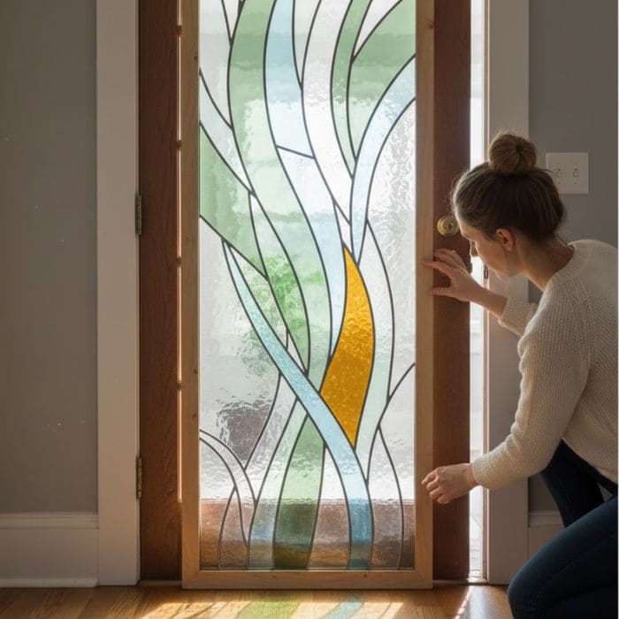 Not the soft kind of light that gently fills a room, but bold, direct light that lands exactly where you stand when you come home. For years, that door was just clear glass. Practical, bright, and honestly a little too honest about how intense the sun can be.