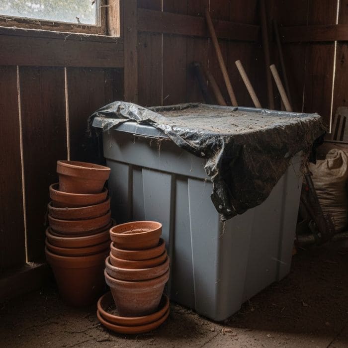 Last week, while Daniel and I were in the backyard barn organizing the garden tools after our last round of fall harvesting, we noticed an old plastic bin tucked behind a stack of unused planters.